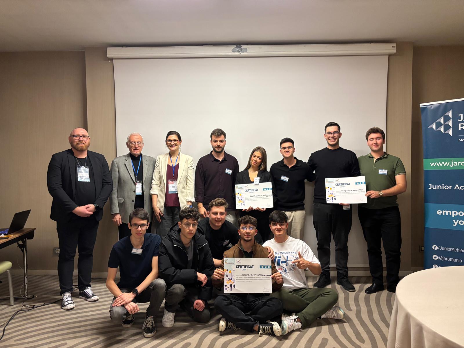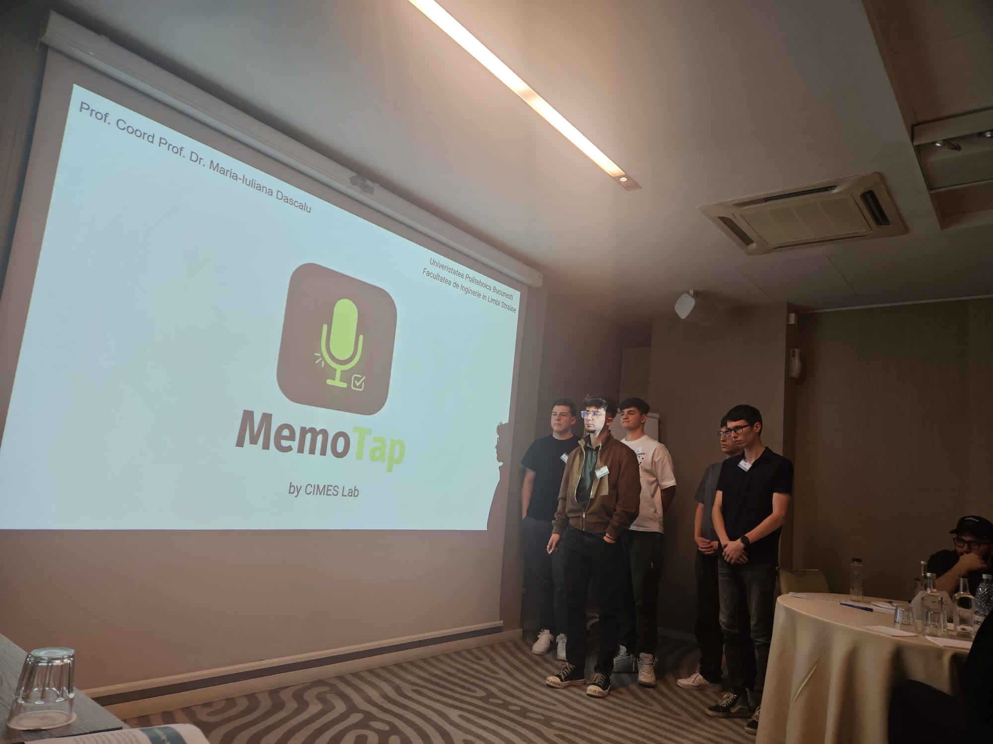 Our FILS–CTI (English stream) students – Andrei Ionescu, Mihnea-Rafael Dunărințu, Sergiu Lefter, Eduard-Andrei Constantin and Mircea-Georgian Ciurariu – guided by Dean Maria-Iuliana Dascălu, won 2nd place at the Junior Achievement Romania Innovation Camp with their AI-driven idea: MemoTap, a smart voice-based app for capturing and organizing thoughts instantly.