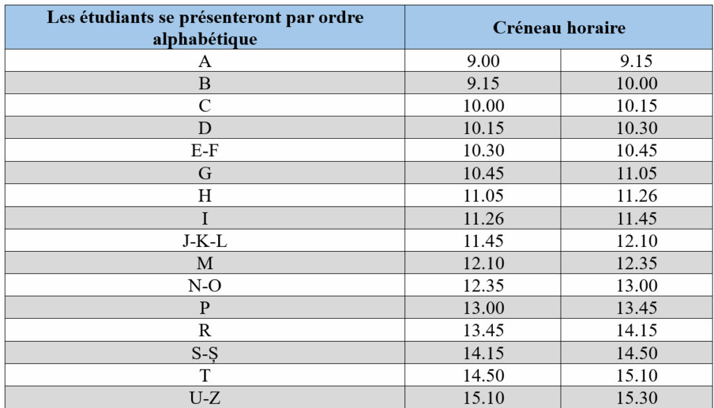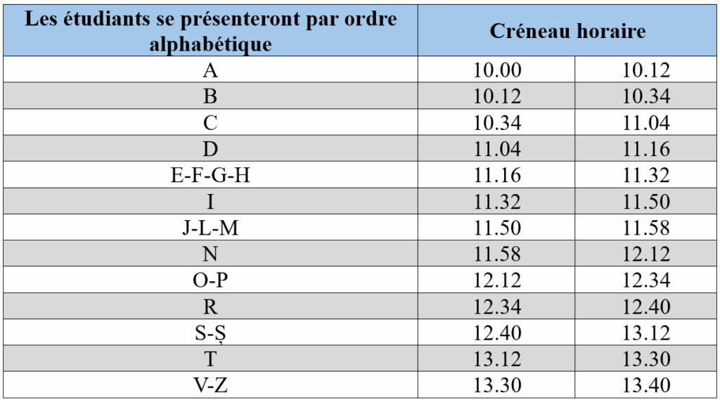 Les étudiants étrangers arrivant pour la première fois à l’Université Nationale de Science et Technologie POLITEHNICA Bucarest et à la Faculté d’Ingénierie en Langues Étrangères sont priés de s’assurer que, avant de se rendre au bureau de la Doyenne (salle JE106) pour demander la répartition dans le dortoir P23, ils ont complété toutes les démarches nécessaires auprès du Bureau des Étudiants Étrangers (salle AN029) et ont été enregistrés dans la base de données du Secrétariat FILS (salle JE105). Il est essentiel de suivre ces étapes!