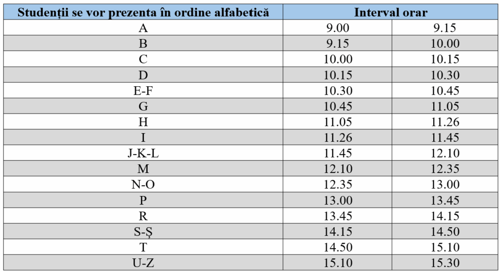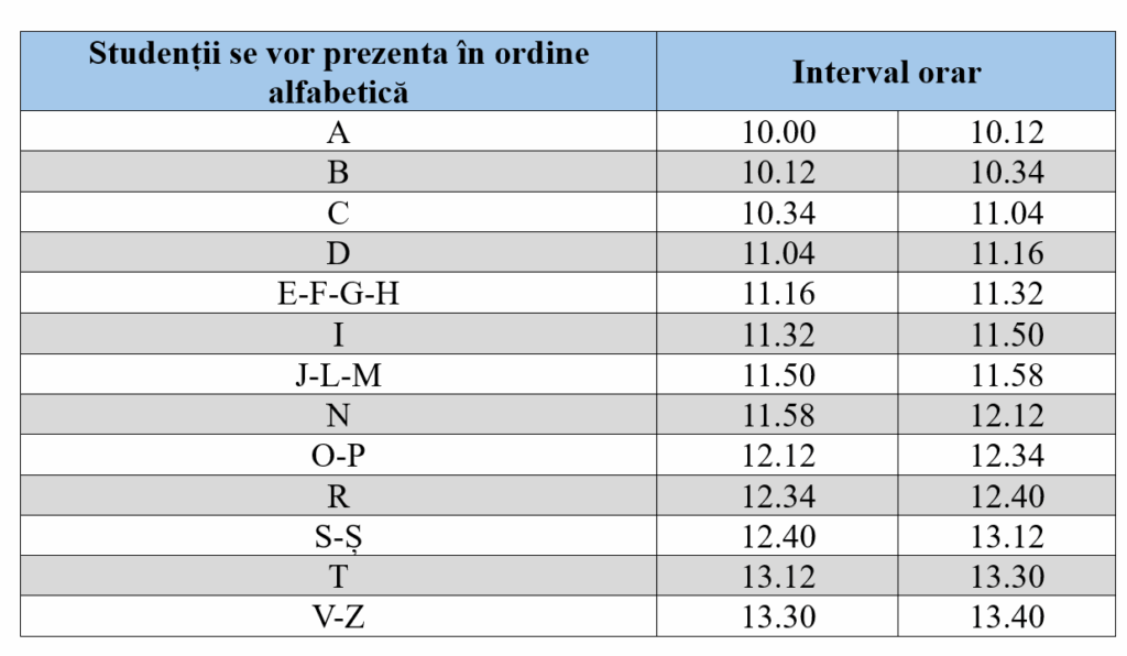 Nota2 – Repartizarea se va ridica personal sau pe baza unei împuterniciri notariale, doar în intervalul orar alocat